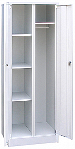 Шкаф для уборочного инвентаря двухсекционный с размерами 1750x600x500 мм позволяет с удобством хранить предметы различного назначения и одежды. Для этого внутри одной секции предусмотрены три полочки, внутри другой - полочка и перекладина для одежды.
