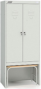 Каждая секция оборудована индивидуальным ключевым замком и укомплектована полкой для головных уборов, двумя крючками и съемной перекладиной для вешалок под одежду. Двери снабжены держателями для номера. При желании покупателя, дополнительно может быть установлена полкой под обувь.