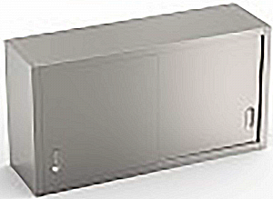 Настенный шкаф с раздвижными дверцами из нержавеющей стали AISI 304. Подвижная промежуточная полка, которую можно расположить на трех разных уровнях, опорную конструкцию необходимо закрепить на стене с помощью прилагаемых монтажных кронштейнов.