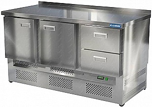 СТОЛ МОРОЗИЛЬНЫЙ (с бортом) 1500*600*850. В данной модели агрегат расположен снизу. Общий объем 322 л. Модель работает от напряжения 220 В и потребляет 900 Вт электроэнергии. Регулировка температуры -10...-18*С. Каждая секция с дверью, оснащена полкой сетчатой и парой направляющих.