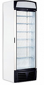 UDD 440 DTKLB — изогнутый низкотемпературный шкаф со стеклянной дверью и лайтбоксом, предназначен для хранения продуктов при температурном режиме -12°…-22°.