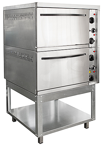 Время разогрева жарочного шкафа до 240°C - 30мин. Диапазон регулирования температуры 20-300(±9)°C. Внутренние размеры каждой камеры 538x535x290 мм. В комплекте 4 противня размером 530x470x30мм. Конструкция шкафа — бескаркасная. Каждая камера состоит из стального короба, съемных направляющих для противней, подового листа, верхнего и нижнего блоков ТЭНов. Спереди модуль имеет открывающуюся дверь, а сверху накрыт крышкой. Объем жарочной камеры обогревается электронагревателями, расположенными снизу и сверху. Оснащен аварийным предохранителем от перегрева свыше 300°C, подставкой, 4 пластмассовыми опорами. Поставляется в собранном виде на поддоне. Упаковка: стрейч-пленка и картонный короб.