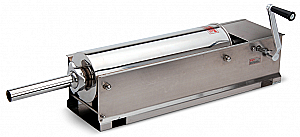 Механический наполнитель колбас горизонтальный. Предназначен для набивки фаршем оболочки колбас, сосисок, сарделек объем цилиндра 7 литров. Изготовлен из нержавеющей стали. В комплекте - 4 насадки различного диаметра: 16мм, 22мм, 32мм, 38мм.