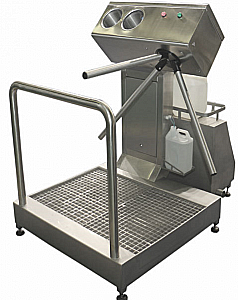 В составе: проходная дезинфекционная ванна, дезинфектор рук, турникет.