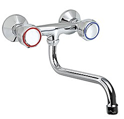 Настенный смеситель на два отверстия с S-образным изливом 300х18 мм