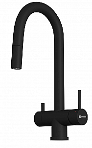 Первый смеситель OMOIKIRI в категории 3 в 1: функция подачи холодной/горячей воды, возможность подключения фильтров для очистки и наличие вытяжного шланга.