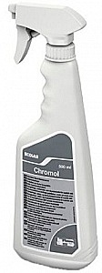 Chromol – средство для очистки и ухода за поверхностями из нержавеющей стали. Не только очищает поверхность, но и защищает ее от последующих загрязнений, таких как отпечатки пальцев, капли воды. Может быть применено спрей-методом. Нерастворим в воде. Не применять на горячих поверхностях и поверхностях, контактирующих с едой.