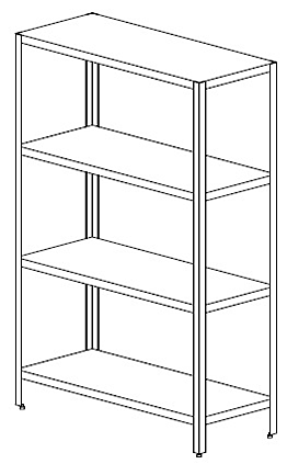 Разборный, 4 сплошные полки с ребром жесткости, возможность установки 5-ти полок, полки не регулируются по уровню, металл AISI 430 - 0,8мм, каркас - нерж. уголок 40х40х1,5. Чертеж СТ 4СНУ-Р - СТАНДАРТ