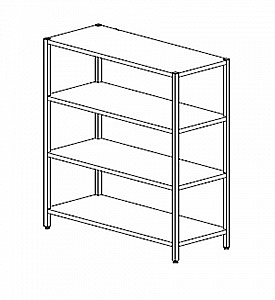 Разборный, 4 сплошные полки, нагрузка на полку до 130 кг., полки регулируются по уровню, металл AISI 430, профиль 40х40, чертеж 0257П-17_03_01-Ст - СТАНДАРТ