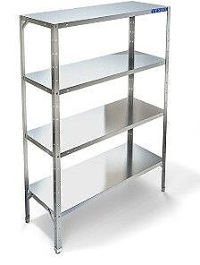 Стеллаж технологический разборный, стойки из уголка 40х40 нержавеющей стали марки AISI 430 толщиной 2мм. Четыре сплошные полки из нержавеющей стали марки AISI 304 толщиной 0,8мм. Расстояние между полками регулируемое с шагом 50мм. Регулируемые опоры. Стеллаж поставляется в разобранном виде.