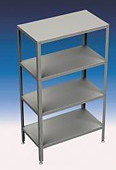 4 сплошных полки из нержавеющей стали (AISI 430), усилены дополнительными ребрами жесткости.