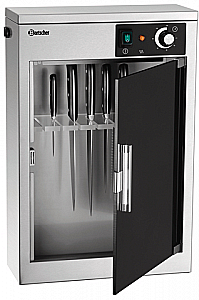 Гигиена и при этом безопасность: диск с черной тонировкой защищает от ультрафиолета, которым стерилизуется до 9 ножей. Просто повесьте ножи, закройте дверцу и настройте таймер.