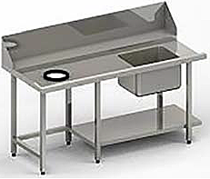Стол для предварительной мойки с нижней полкой и раковиной, сливное отверстие с резиновым кольцом, левое исполнение