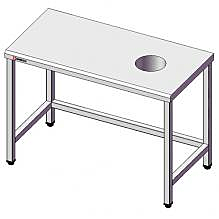 Столы для сбора отходов предназначены для использования как непосредственно в цехе приготовления пищи, так и в зоне приеме грязной посуды с целью избавления от пищевых отходов. Отверстие D=200 мм. Выполнены из высококачественной пищевой нержавеющей стали