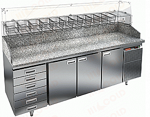 С бортом с 3х сторон с гранитной поверхностью, 3 распашные двери и дополнительный модуль с 6-ю ящиками