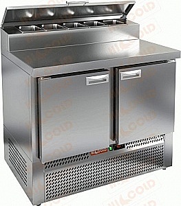 Размер охлодительной горки 859х141 мм, высота 1/6H - 100мм мах, глубина рабочей части столешницы 486 мм; выполнен полностью из нержавеющей стали марки AISI 304, 2 распашные двери.
