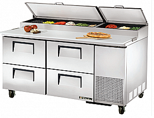 Стол имеет 2 охлаждаемых гнезда размерами 954х324 мм и 477х324 мм для гастроёмкостей в задней части столешницы, съемную фронтальную разделочную доску размером 1708 х496 х13 мм из белого полиэтилена, 2 крышки для гнезд, 2х2 выдвижных ящика.