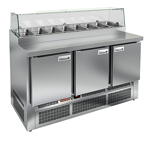 Холодильный стол для пиццы HICOLD PZE2-111/GN стекло предназначен для раскатки теста, а также для охлаждения, хранения и разделки ингредиентов для пиццы на пищевых производствах, предприятиях общественного питания и торговли.