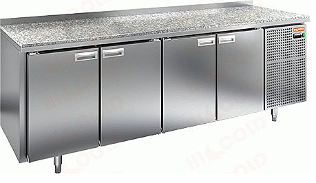 Выполнен из нержавеющей стали, каменная столешница, , 4 распашные двери.