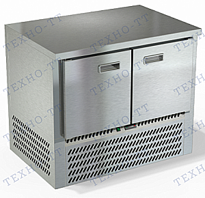 Холодильный стол из нержавеющей стали, две двери, без борта, объём стола 220 литров, температурный режим -2...+10