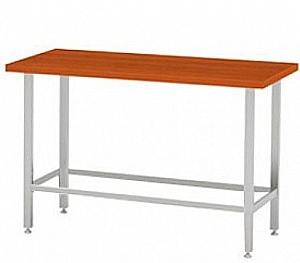 Шлифованная н/ст, столешница бук - 30 мм, неразборная конструкция, нижний фартук, каркас - труба 40*40*1,2 мм, сплошная полка, R36регулируемые ножки(+/-20мм)