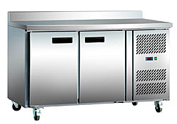 2 дверцы, 2 полки-решетки GN 1/1 с направляющими, столешница с бортом, материал корпуса снаружи и внутри - нержавеющая сталь 304