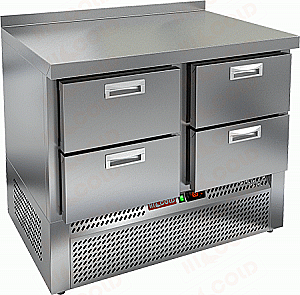 4 выдвижных ящика, стол с нижним расположением агрегата, выполнен полностью из нержавеющей стали