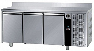 Низкотемпературный стол с тремя дверцами и стальным бортом высотой 10 см.