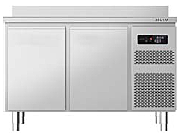 Холодильный стол STANDARD LINE, изготовлен из нержавеющей стали AISI 304, изоляция 60 мм (без CFC и HCFC). Вентилируемое охлаждение, вентилятор постоянного тока с низким потреблением на испарителе. Автоматическое оттаивание, Автоматическое испарение талой воды, Съемный конденсаторный блок, Хладагент R290. Дверная рама со сменным нагревательным кабелем, самозакрывающаяся и перенавешиваемая дверца, магнитные прокладки, заменяемые без инструмента, формованное дно шкафа с закругленными углами и съемными держателями решетки для легкой очистки и гибкости при загрузке. Испаритель с антикоррозийной обработкой, регулируемые ножки из нержавеющей стали AISI 304, стандартное оснащение: 1 решетка Rilsan GN 1/1 для каждой двери, электронное управление.