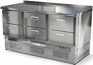 СТОЛ МОРОЗИЛЬНЫЙ (с бортом) 1500*600*850. В данной модели агрегат расположен снизу. Общий объем 322 л. Модель работает от напряжения 220 В и потребляет 900 Вт электроэнергии. Регулировка температуры -10...-18*С.
