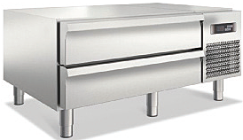 Стол морозильный -15-20°C без столешницы для поддержки кухонных элементов серии Extreme в модулях 120 мм, с двумя выдвижными ящиками на телескопических направляющих из нержавеющей стали, вместимость GN2/1 обеспечивает большое и легкодоступное пространство для хранения. Нержавеющая сталь AISI 304, монококовая конструкция. Толщина изоляции 50 мм (без CFC и HCFC). Вентилируемое охлаждение с электронной регулировкой температуры. Автоматическая разморозка. Размораживание испарением воды. Тип хладагента R290.
