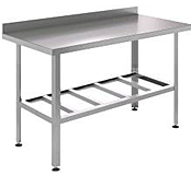 н/ст, толщина столешницы - 0,8 мм, разборная конструкция, решетчатая полка, каркас - нерж. уголок 40*40*1,5 мм, Hстолешницы -40 мм, Hборта - 40 мм, столешница усилена ЛДСП толщиной 16 мм, регулируемые ножки(+/-20мм), отступ от края 100 мм