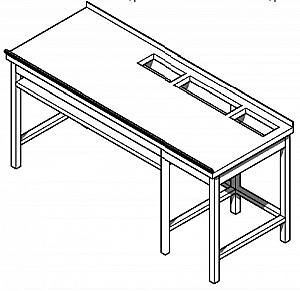 Три отверстия в столешнице: правое 290х142 мм, центральное 450х142 мм, левое 290х142 мм