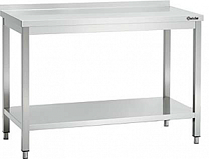 Рабочие столы из нержавеющей стали, полировка Scotch-Brite, с окантовкой с 4-х сторон, ножки из профиля 40 х 40 мм и регулируемые по высоте до 50 мм, высота 850-900 мм, борт 40 мм.