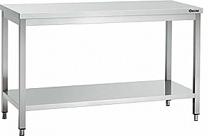 Рабочие столы из нержавеющей стали, полировка Scotch-Brite, с окантовкой с 4-х сторон, ножки из профиля 40 х 40 мм и регулируемые по высоте до 50 мм, высота 850-900 мм, борт 40 мм.