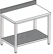 Стол пристенный, каркас из нержавеющей стали, борт, полка.