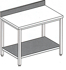 Стол пристенный, каркас из нержавеющей стали, борт, полка.