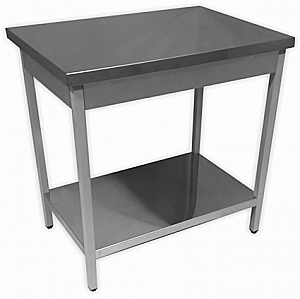 Разборный, без борта, подложка ДСП, фартуки оцинкованные с 4-х сторон, столешница и полка – нержавеющая сталь AISI 430 - 0,6мм, крашеный каркас-профиль 25х25 с порошковым антивандальным покрытием, чертеж 0979П-17_07_24-СН - СТАНДАРТ