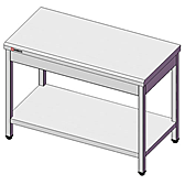 Стол нейтральный полностью нержавеющая сталь (каркас профильная труба), обвязка с трех сторон, полка