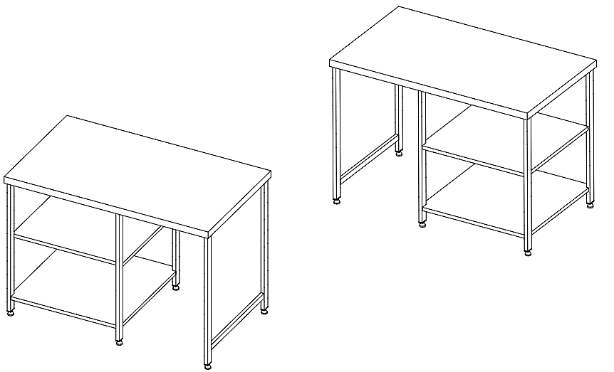 н/ст AISI 430,1200х700х850мм,сварная конструкция,каркас труба 20х40мм,столешница 1мм,слева отсек 620мм с 2-мя полками высотой 20мм,справа отсек 500мм,обвязка,6 ног,регулируемые опоры,отступ полки от полка 100мм,свесы по бокам 10мм