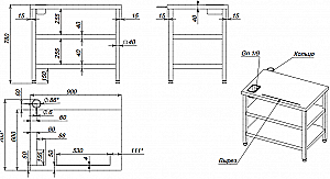 ЭСКИЗ,н/ст AISI 430,900х600х780мм,2 полки,сварная конструкция,каркас труба 40х40мм,столешница 1мм с вырезом по эскизу и отверстием для GN1/9(в комплект не входит),сзади кольцо,регулируемые опоры