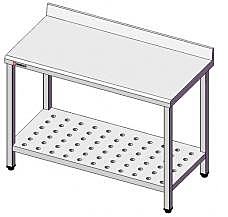 Выполнены из высококачественной пищевой нержавеющей стали. Для усиления столешницы использована ДСП плита. Снизу столешница герметично зашита металлом, что значительно облегчает уборку кухни и повышает антикоррозионные качества стола. Каркас изготовлен из трубы 40х40мм. Стол укомплектован сплошной полкой и имеет регулируемые по высоте ножки для устранения неровностей пола.