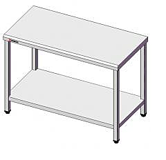 Выполнены из высококачественной пищевой нержавеющей стали. Для усиления столешницы использована ДСП плита. Снизу столешница герметично зашита металлом, что значительно облегчает уборку кухни и повышает антикоррозионные качества стола. Каркас изготовлен из трубы 40х40мм. Стол укомплектован сплошной полкой и имеет регулируемые по высоте ножки для устранения неровностей пола.