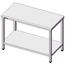 Выполнены из высококачественной пищевой нержавеющей стали. Для усиления столешницы использована ДСП плита. Снизу столешница герметично зашита металлом, что значительно облегчает уборку кухни и повышает антикоррозионные качества стола. Каркас изготовлен из трубы 40х40мм. Стол может быть укомплектован полкой - сплошной, либо перфорированной. Стол имеет регулируемые по высоте ножки для устранения неровностей пола.