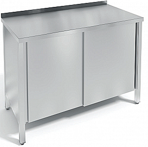 Неразборный, борт, полка-дно + промежуточная полка, закрыт с 3-х сторон, двери-купе -2 шт., металл AISI 430, профиль 40х40