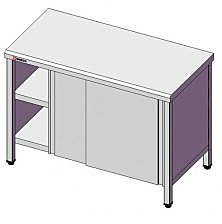Предназначены для хранения продуктов питания, посуды и инвентаря. В комплекте стола закрытого 1 сплошная внутренняя полка. Без борта. Двери-купе. Сварная конструкция.