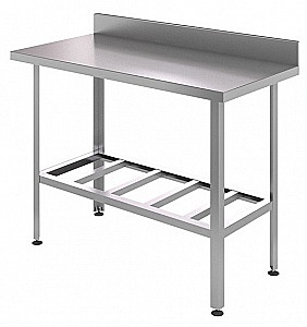 н/ст, толщина столешницы - 0,8 мм, разборная конструкция, решетчатая полка, каркас - оцин. уголок 40*40*1,5 мм, Hстолешницы -40 мм, Hборта - 40 мм, столешница усилена ЛДСП толщиной 16 мм, регулируемые ножки(+/-20мм), отступ от края 100 мм