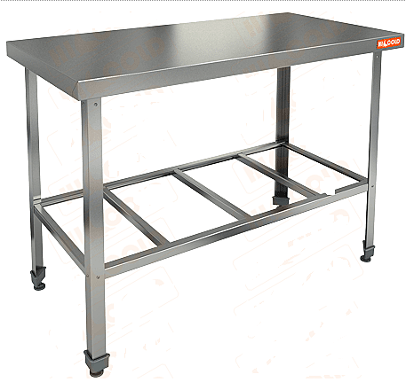 Каркас из металлического оцинкованного уголка, столешница - из нержавеющей стали 430.
