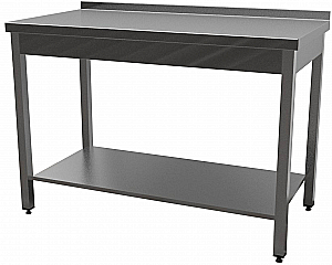 Стол Standart с бортом, с нижней сплошной полкой, каркас сварной - нерж.профиль 40х40, отступ задних ног 80 мм, нерж.сталь