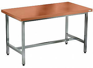 - Стол кондитерский состоит из буковой столешницы толщиной 40 мм и каркаса выполненного из высококачественной нержавеющей квадратной трубы 40х40 мм.